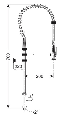 Gruppo doccia monoacqua con rubinetto monoforo e levetta 1/4 di giro, modello Mignon h 700 mm