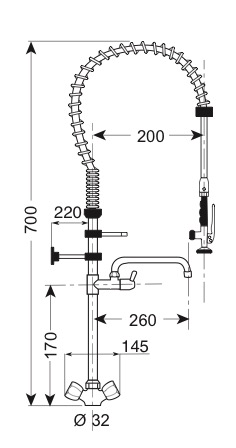 Gruppo doccia con miscelatore monoforo, con manopole multigiro e rubinetto di servizio, modello Mignon h 700 mm