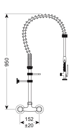 Gruppo doccia con miscelatore biforo, con manopole multigiro