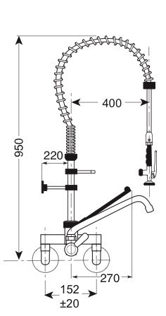 Gruppo doccia con miscelatore biforo, con leva clinica nera e rubinetto di servizio incorporato, canna ø 20 mm, modello standard