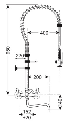 Gruppo doccia con miscelatore biforo, con manopole multigiro