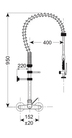 Gruppo doccia con miscelatore biforo, con leva monocomando lunga
