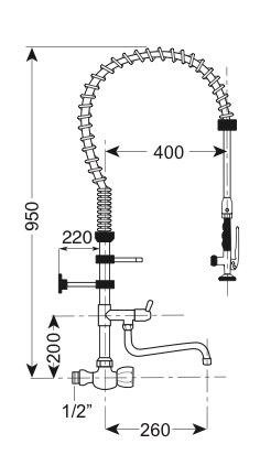 Gruppo doccia con rubinetto monoforo, monoacqua, con manopola multigiro e rubinetto di servizio