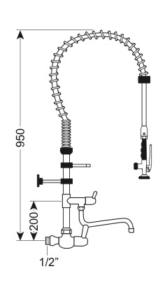 Gruppo doccia con rubinetto monoforo, monoacqua, con levetta 1/4 di giro e rubinetto di servizio
