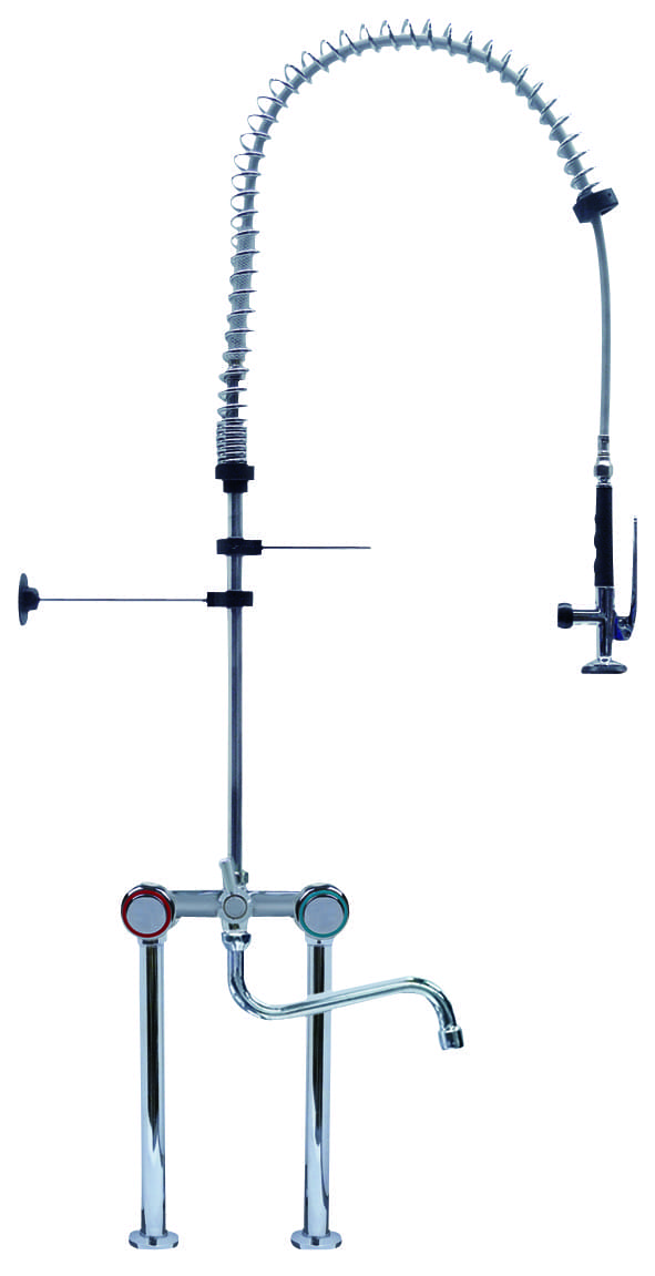 Gruppo doccia con miscelatore biforo su colonna da 300 mm, con manopole multigiro e rubinetto di servizio