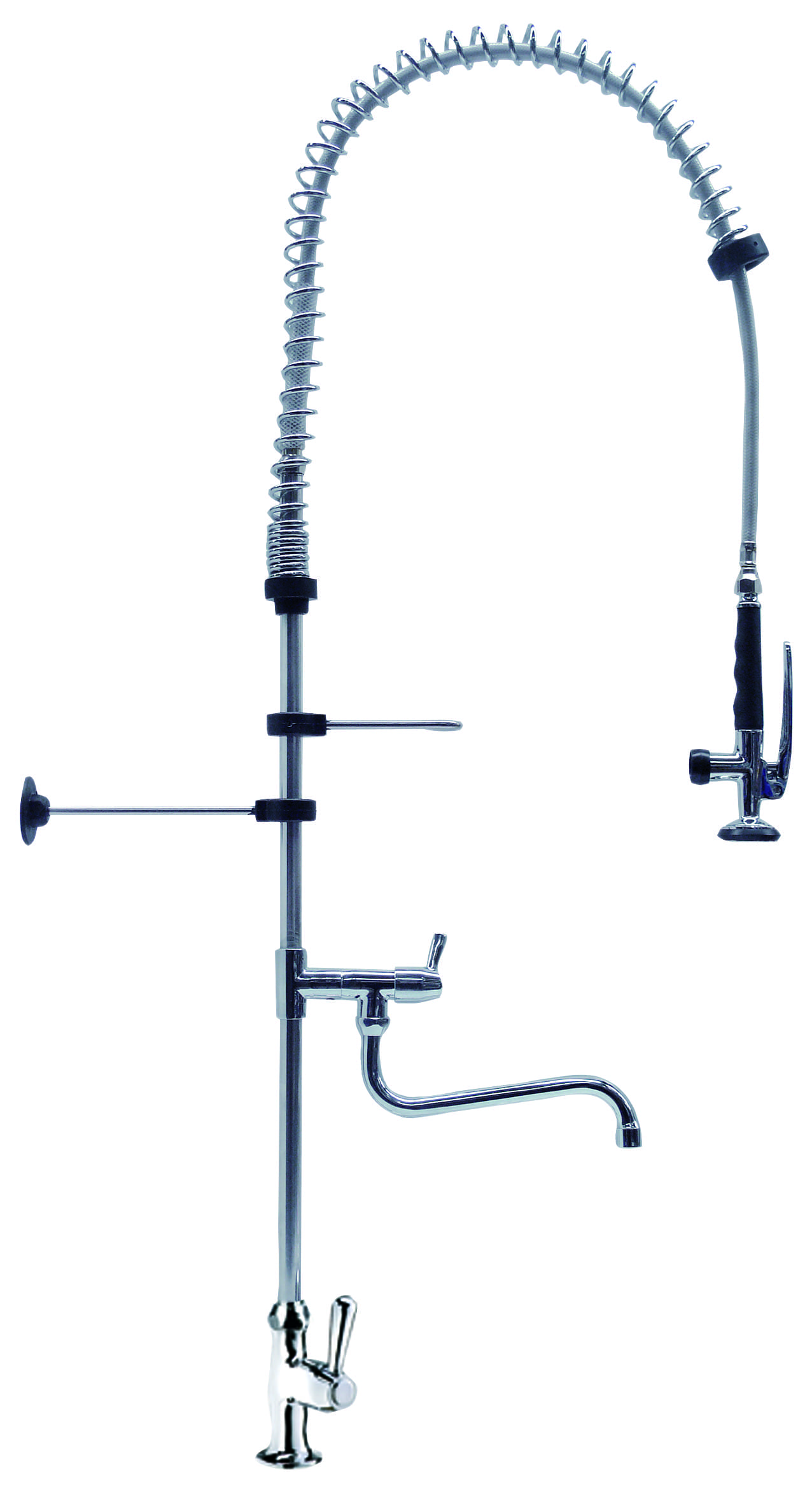 Gruppo doccia con rubinetto monoforo, monoacqua con manopola multigiro e rubinetto di servizio