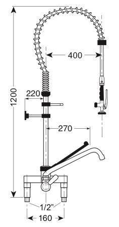 Gruppo doccia con miscelatore biforo, con leva clinica nera e rubinetto di servizio incorporato, canna ø 20 mm, modello standard