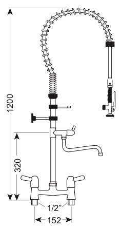 Gruppo doccia con miscelatore biforo con levette 1/4 di giro e rubinetto di servizio