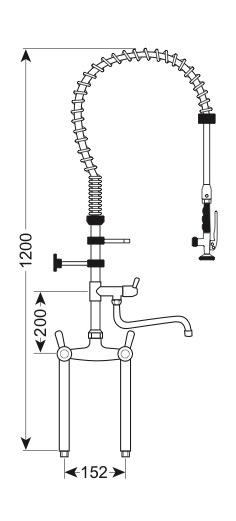 Gruppo doccia con miscelatore biforo su colonna da 300 mm, con levette 1/4 di giro e rubinetto di servizio