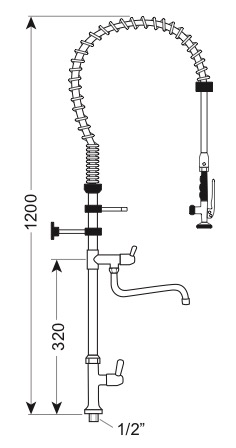 Gruppo doccia con rubinetto monoforo, monoacqua con levetta 1/4 di giro e rubinetto di servizio
