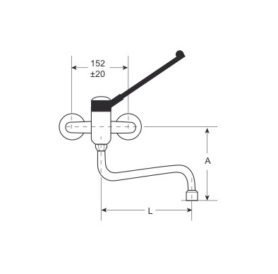 Miscelatore biforo a leva lunga in plastica nera, modello standard
