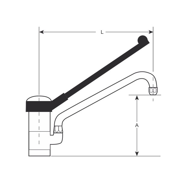 Miscelatore monoforo con leva lunga in plastica nera, uscita tubo alta ø 20 mm