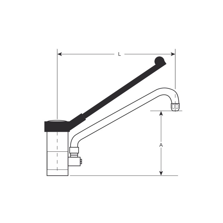 Miscelatore monoforo con leva lunga in plastica nera, uscita tubo alta ø 25 mm, modello pesante