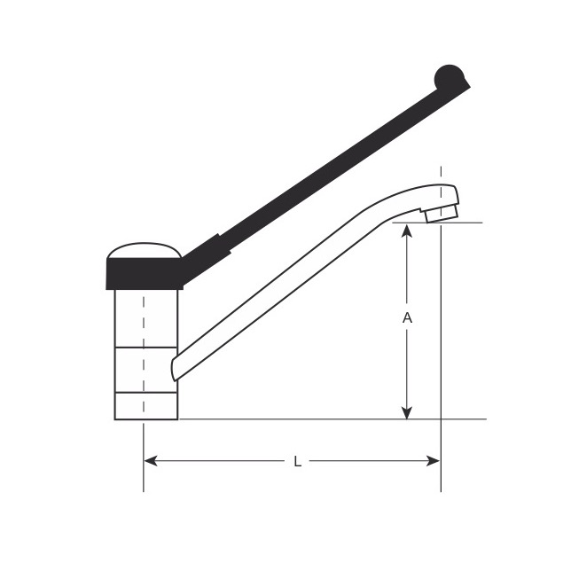 Miscelatore monoforo con leva extra lunga in plastica nera, uscita tubo bassa