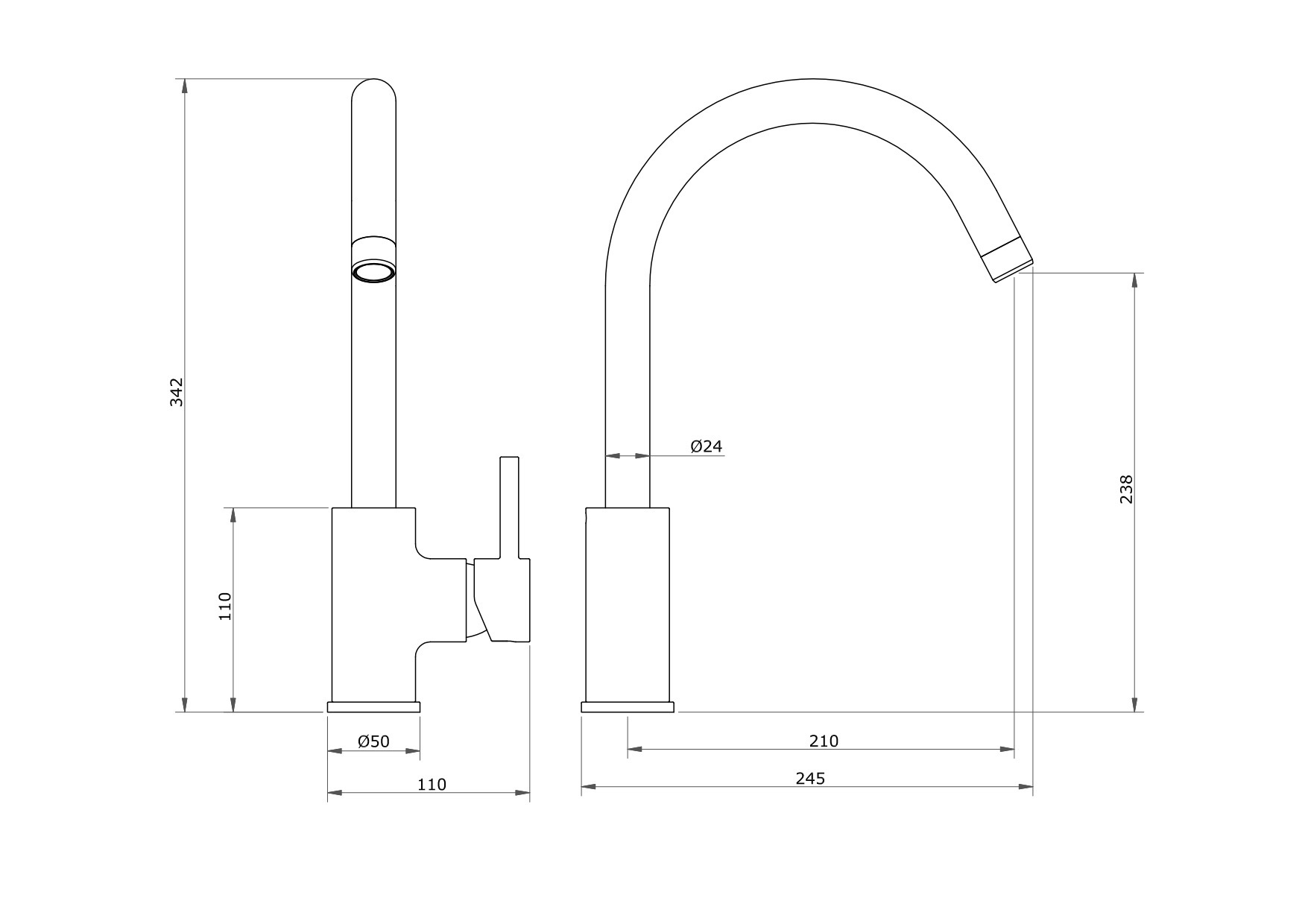 Miscelatore monoforo da cucina in acciaio inox, con bocca girevole