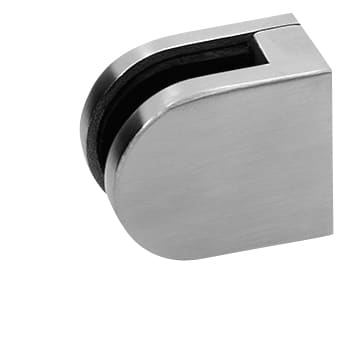 Pinza fissaggio vetro in acciaio inox satinato, raggiata per tubo Ø 30 - vetro da 6 mm