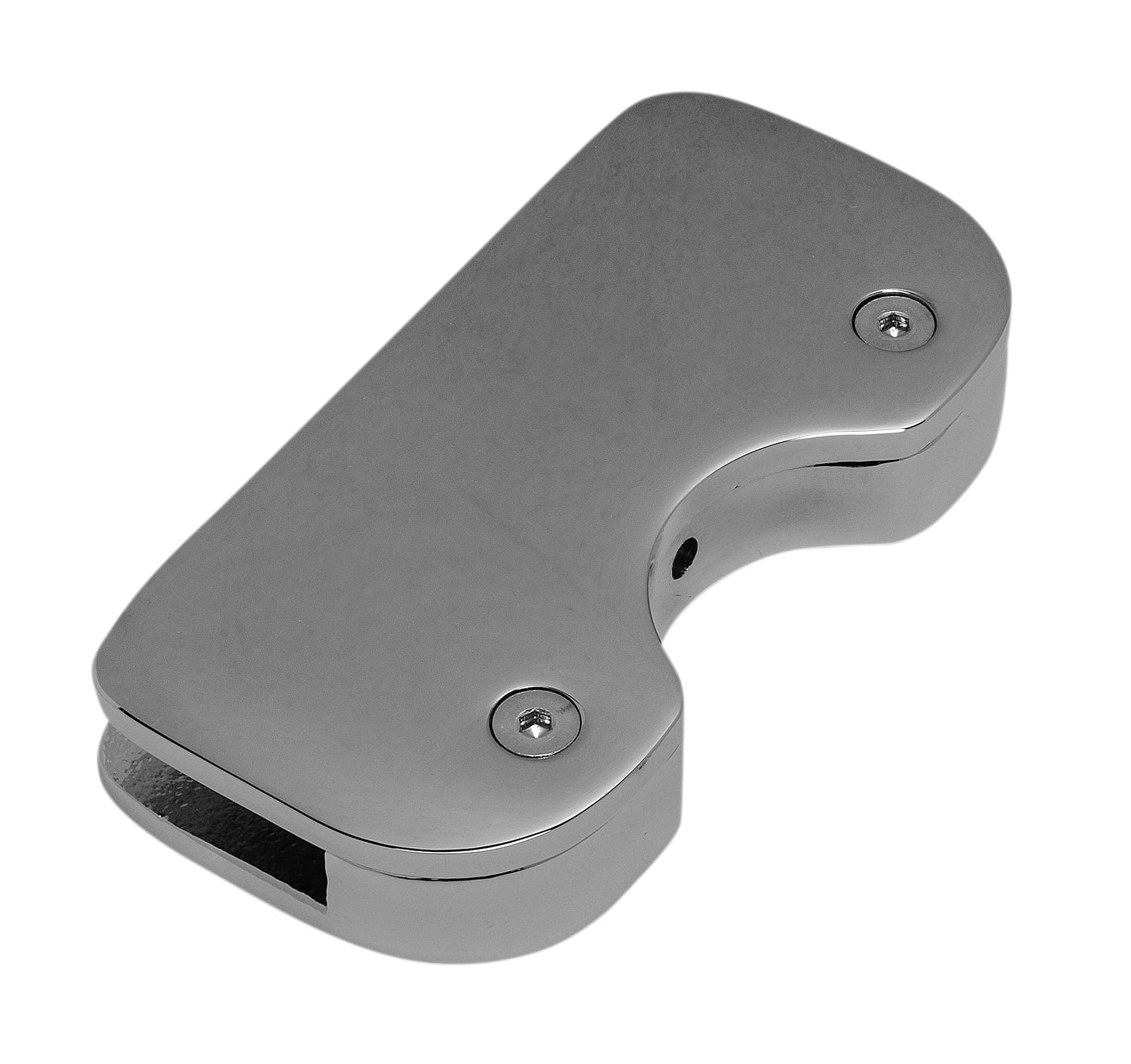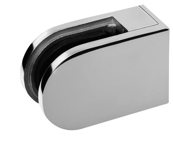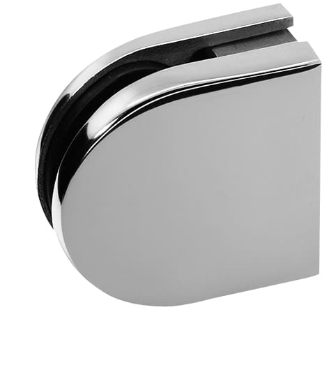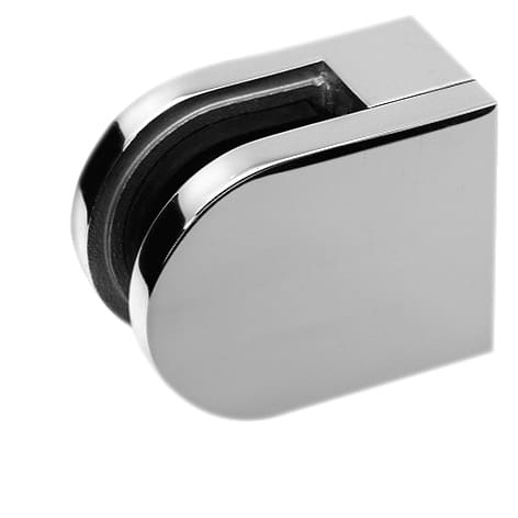 Pinza fissaggio vetro in acciaio inox lucido, raggiata per tubo Ø 43 - vetro da 6/8 mm