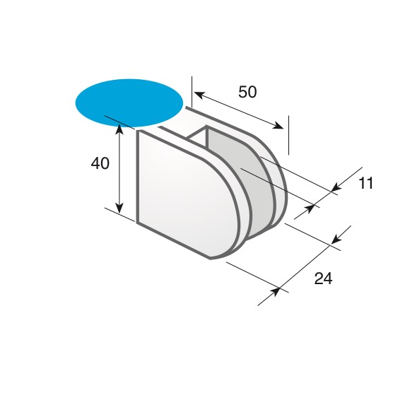 Pinza fissaggio vetro in acciaio inox lucido, raggiata per tubo Ø 43 - vetro da 8/10 mm