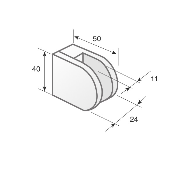 Pinza fissaggio vetro in acciaio inox lucido, dritta per tubo quadro - vetro da 8/10 mm