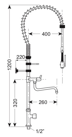 Gruppo doccia con rubinetto monoforo, monoacqua con manopola multigiro e rubinetto di servizio