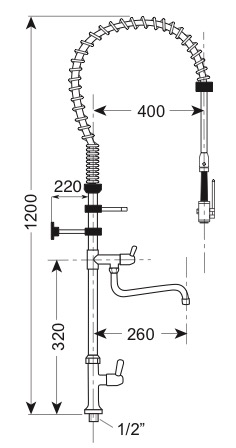 Gruppo doccia con rubinetto monoforo, monoacqua con levetta 1/4 di giro e rubinetto di servizio