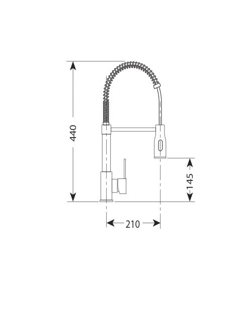 Miscelatore monoforo monocomando da cucina, con molla e bocca girevole