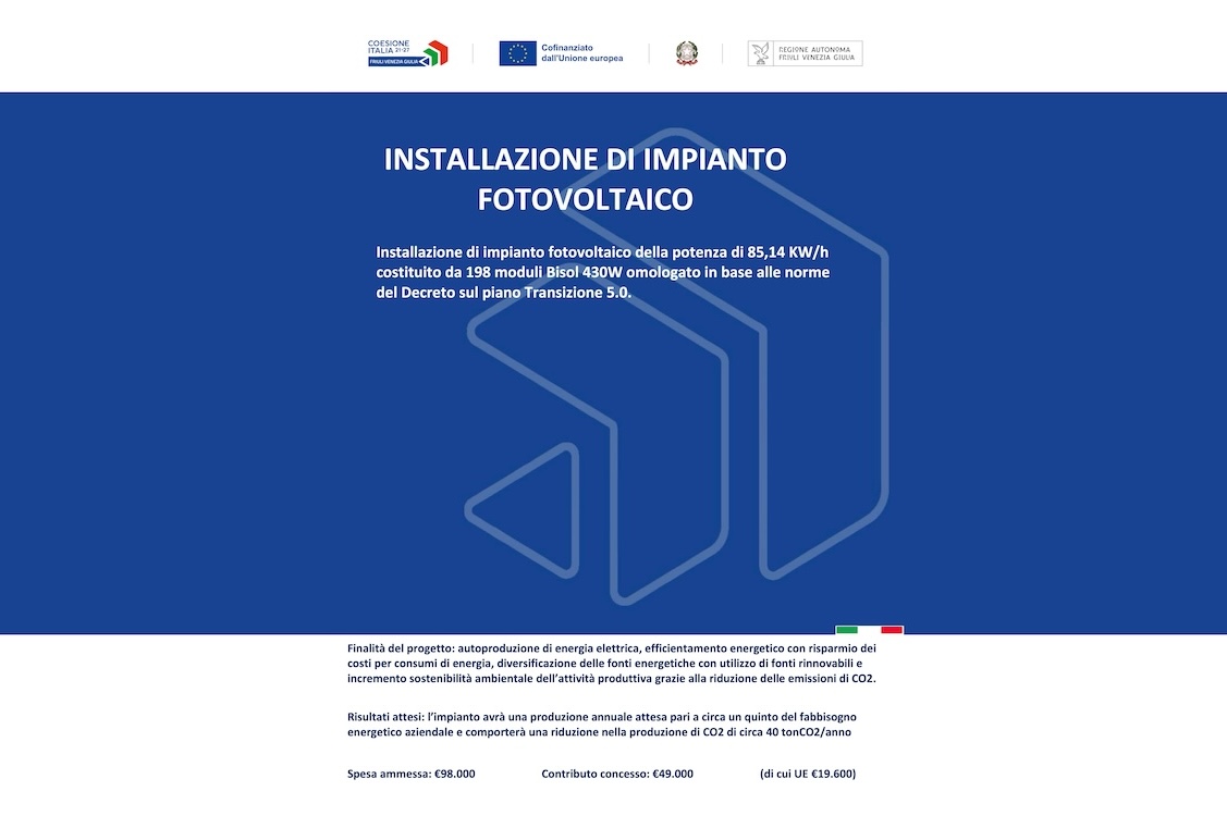 costituito da 198 moduli Bisol 430W omologato in base alle norme